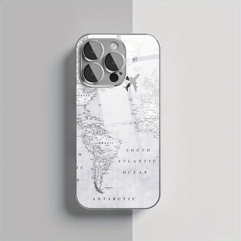 Creative Grey Map Plane Flight Print Pattern Electroplate TPU Case For iPhone 17 16 15 14 13 12 11 Pro Max Plus 17 Air Cover
