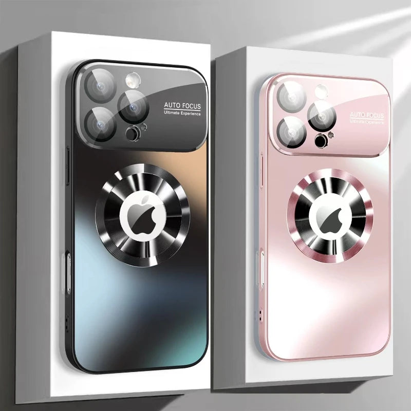 Fashionable Large Window Magsafe Wireless Charging Case ,For iPhone 11 12 13 14 15 16 Pro Max, With Lens Protector