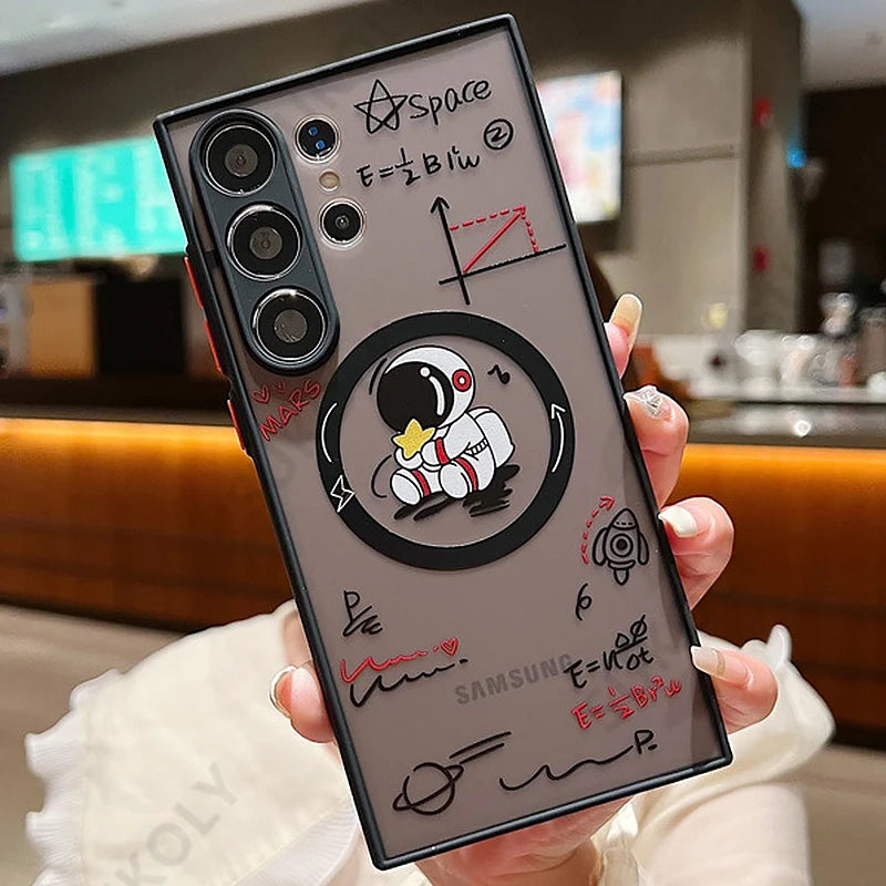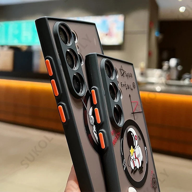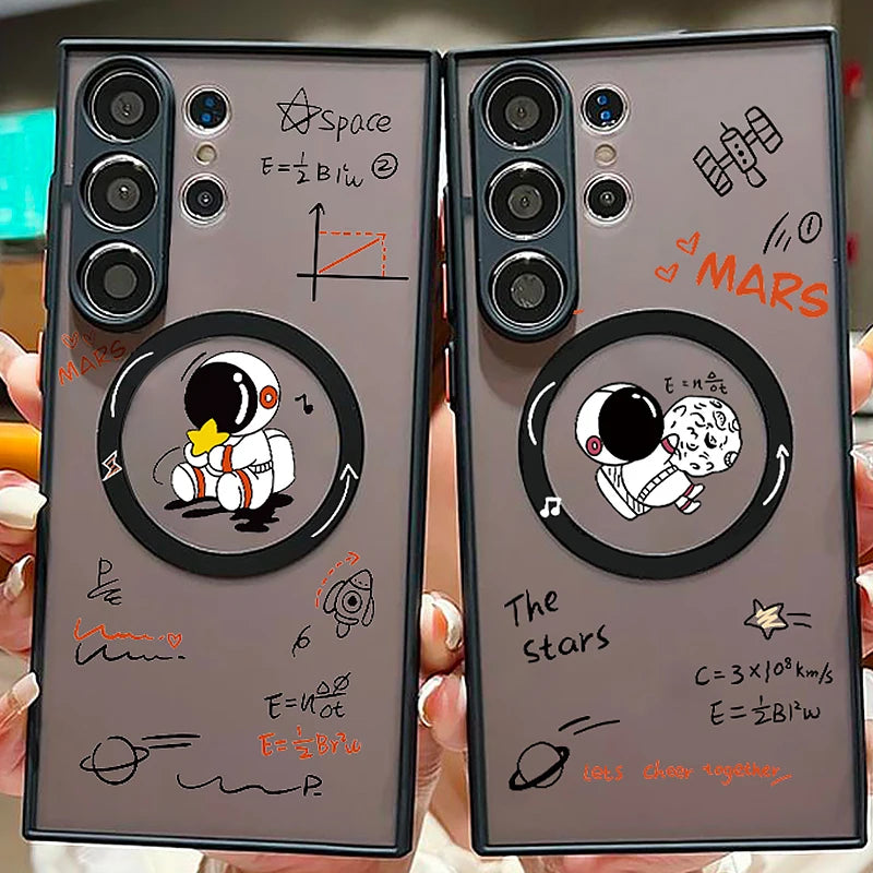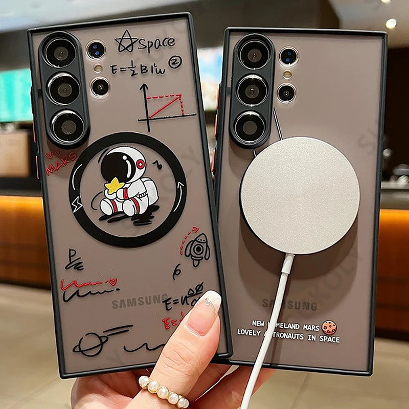 For Samsung Galaxy S25 Edge S24 S23 Ultra Plus S21 S25 FE S22 Astronaut Magsafe Charging Iron Ring Case Shockproof Bumper Cover