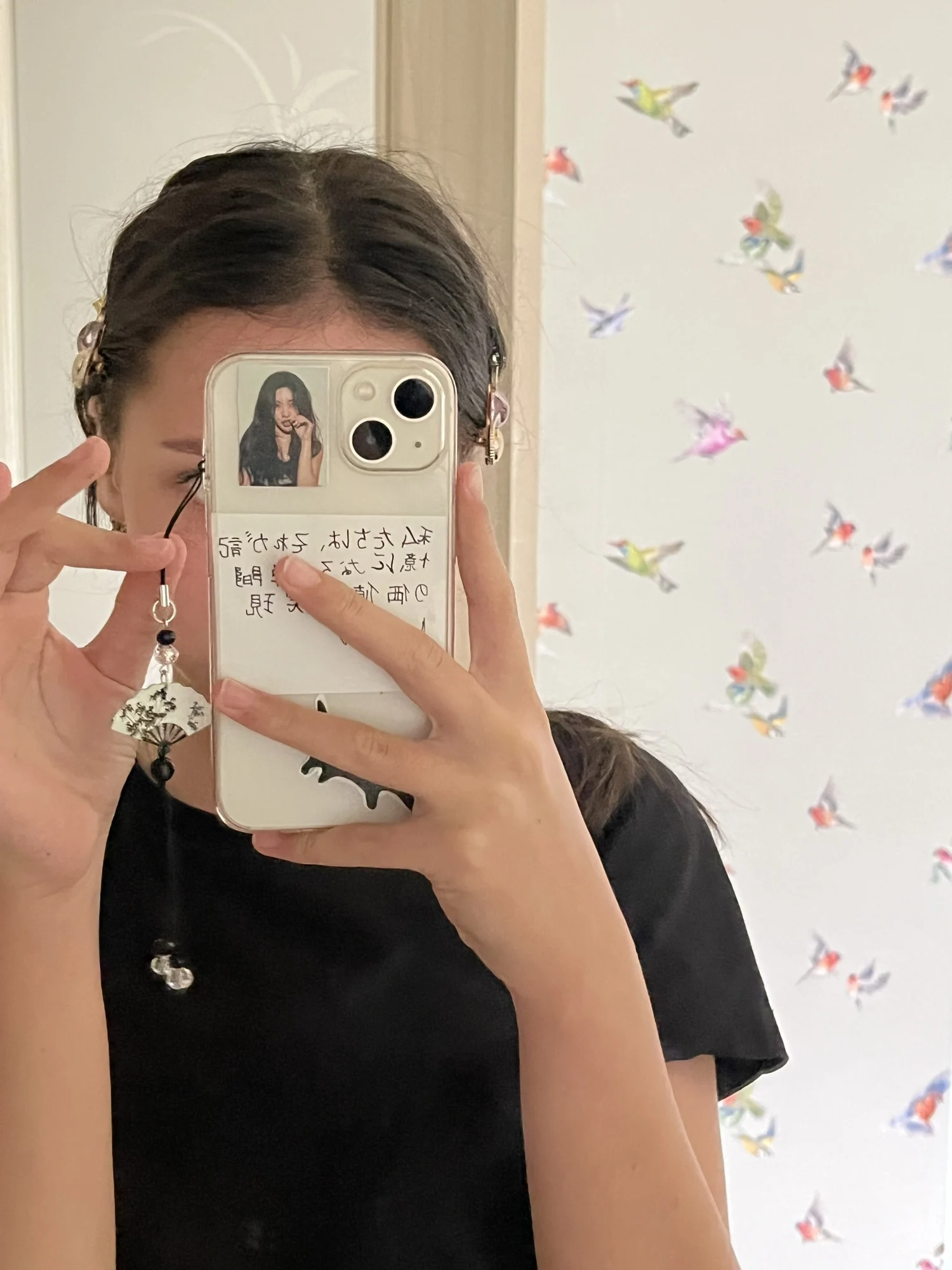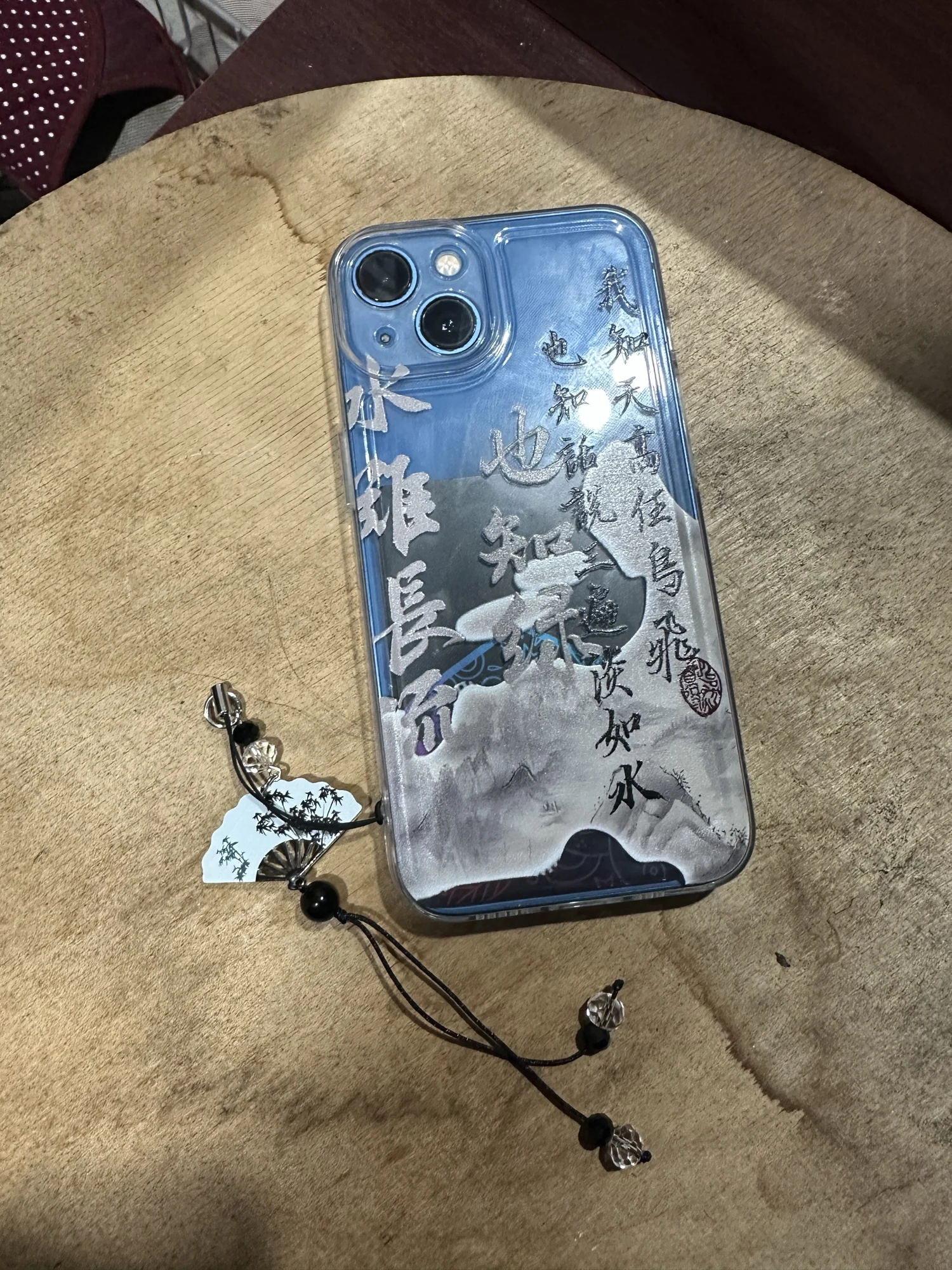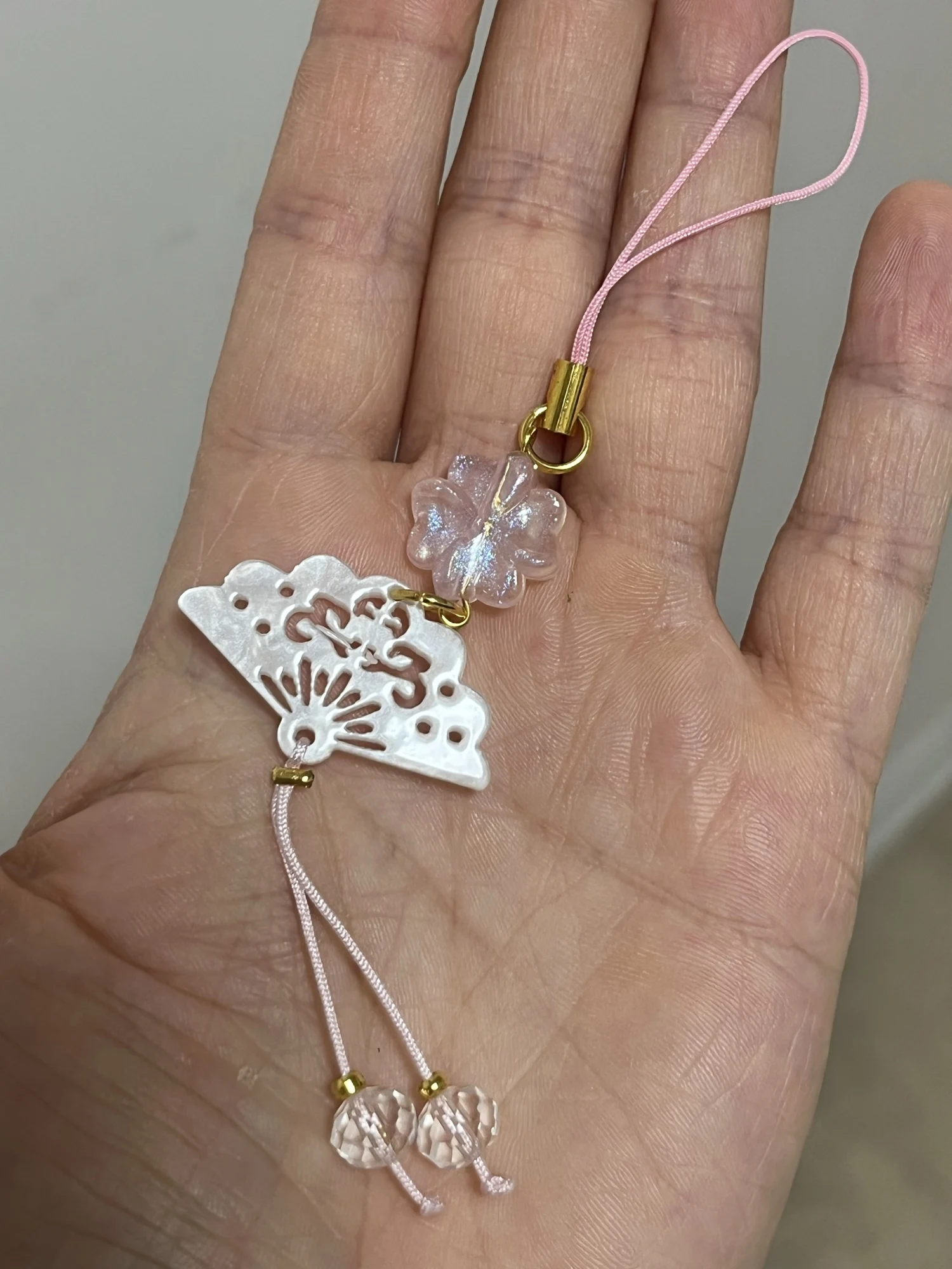 Handmade Chinese-style butterfly phone charm with calligraphy design. Elegant trinket strap and anti-lost cord for phones or bags.