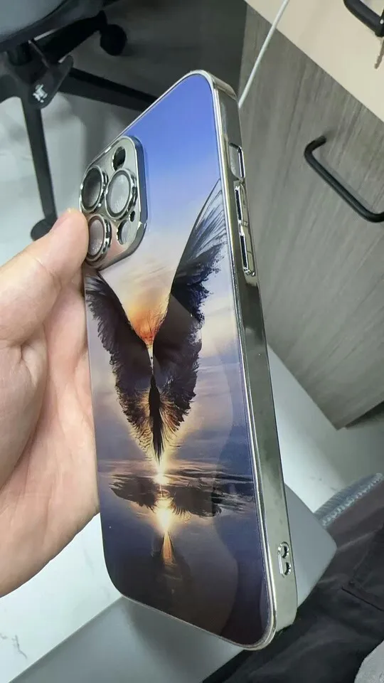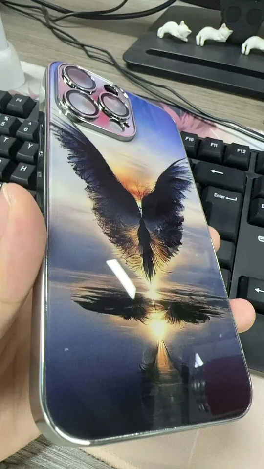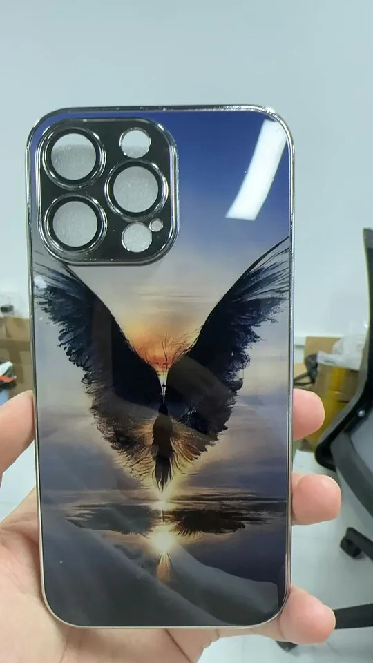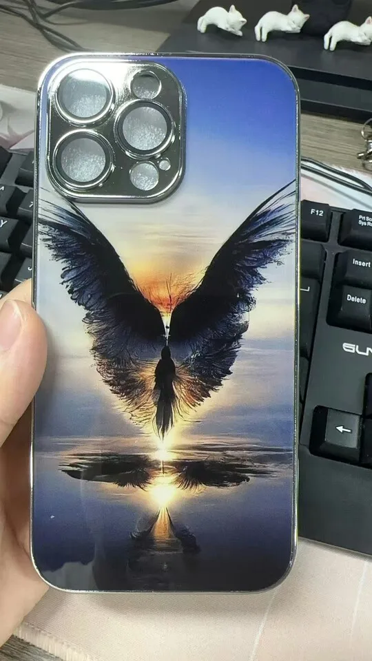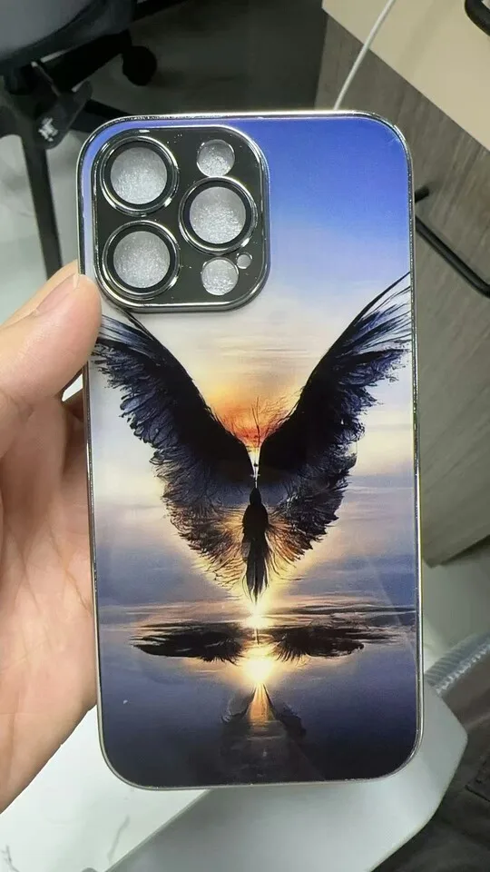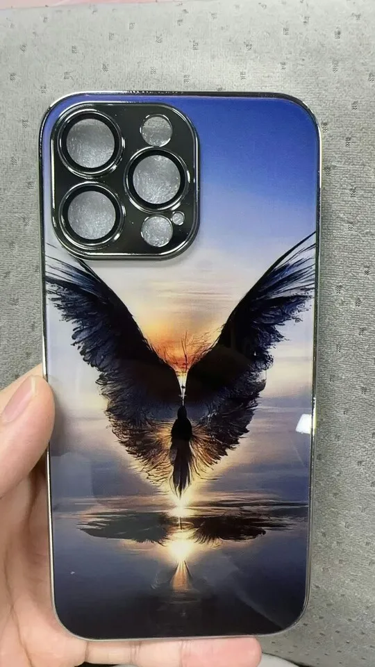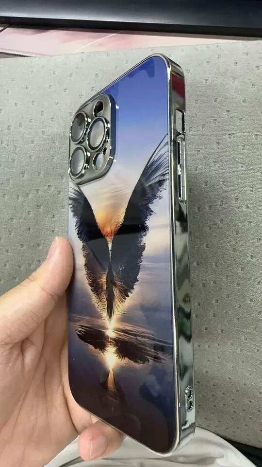 Light Luxury Crystal Eagle Pattern Glass Electroplated Phone Case For iPhone 11 12 13 14 15 16 17 Pro Max Plus 16E 17 Air Cover