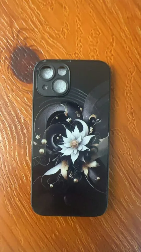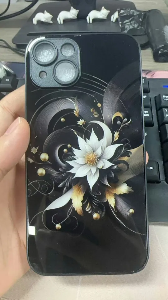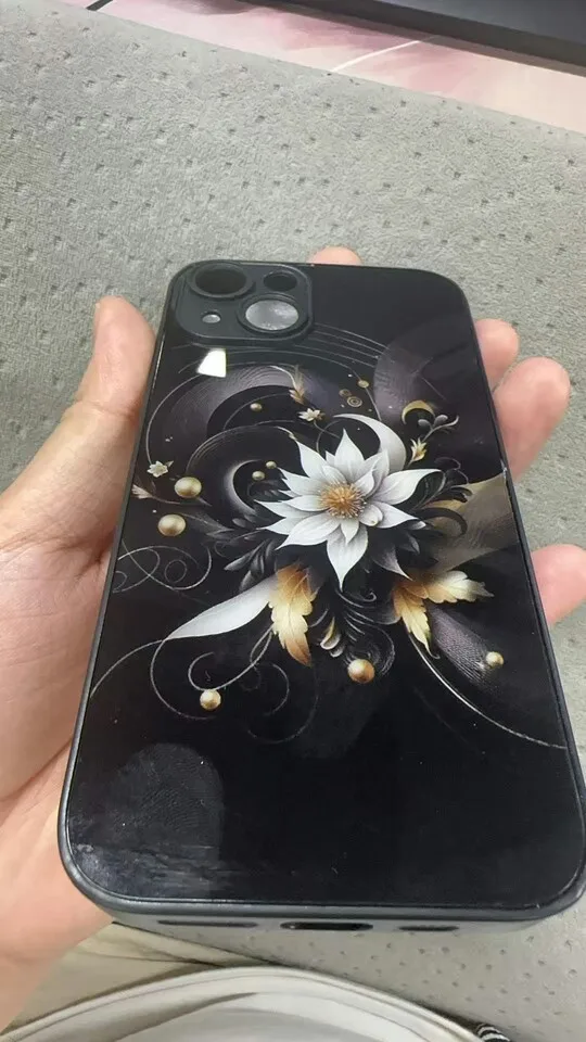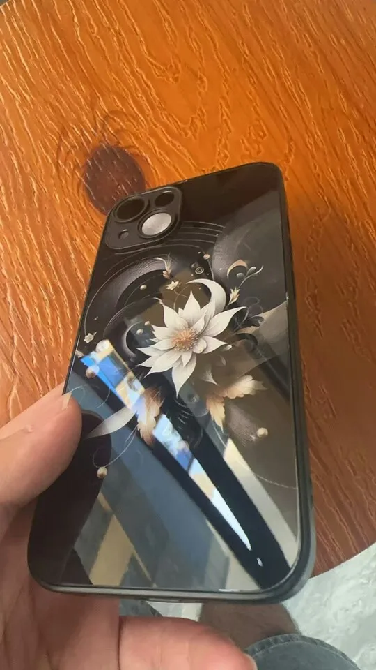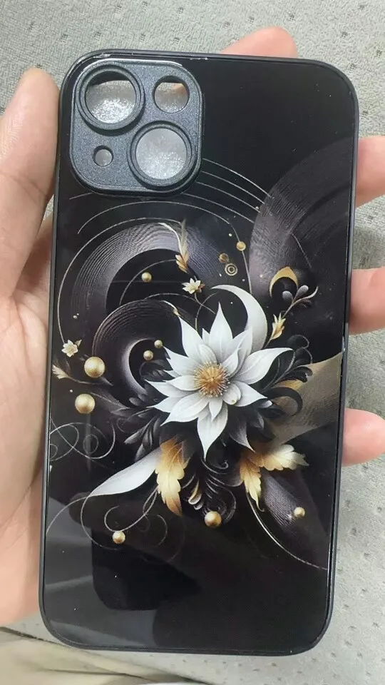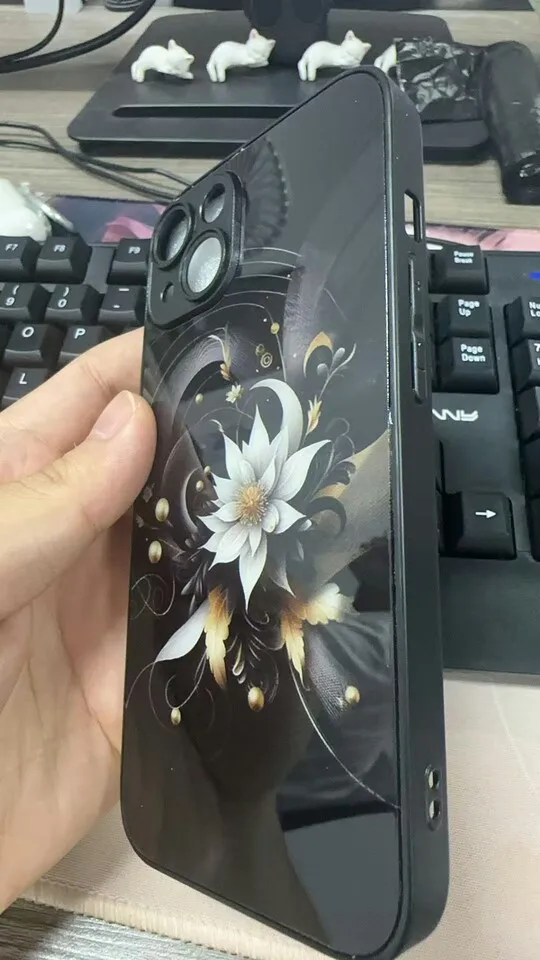 Luxury Black Lotus Flower Pattern Tempered Glass Phone Case For iPhone 17 16 15 14 13 12 11 Pro Max 17Air 7 8 Plus XR XS X Cover