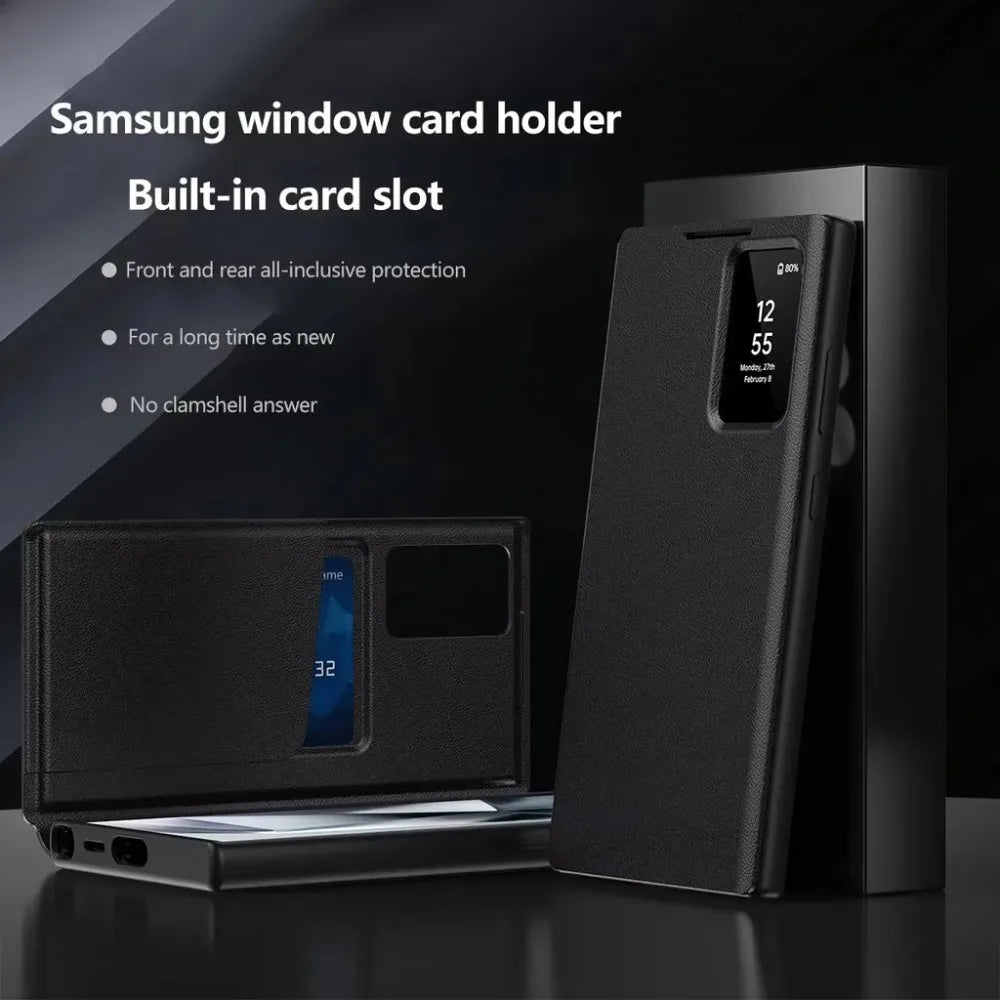 Minimalist Leather Wallet Card Holder Case for Samsung Galaxy S22 S23 S24 S25 Plus Ultra | Smart Clear View Flip Cover